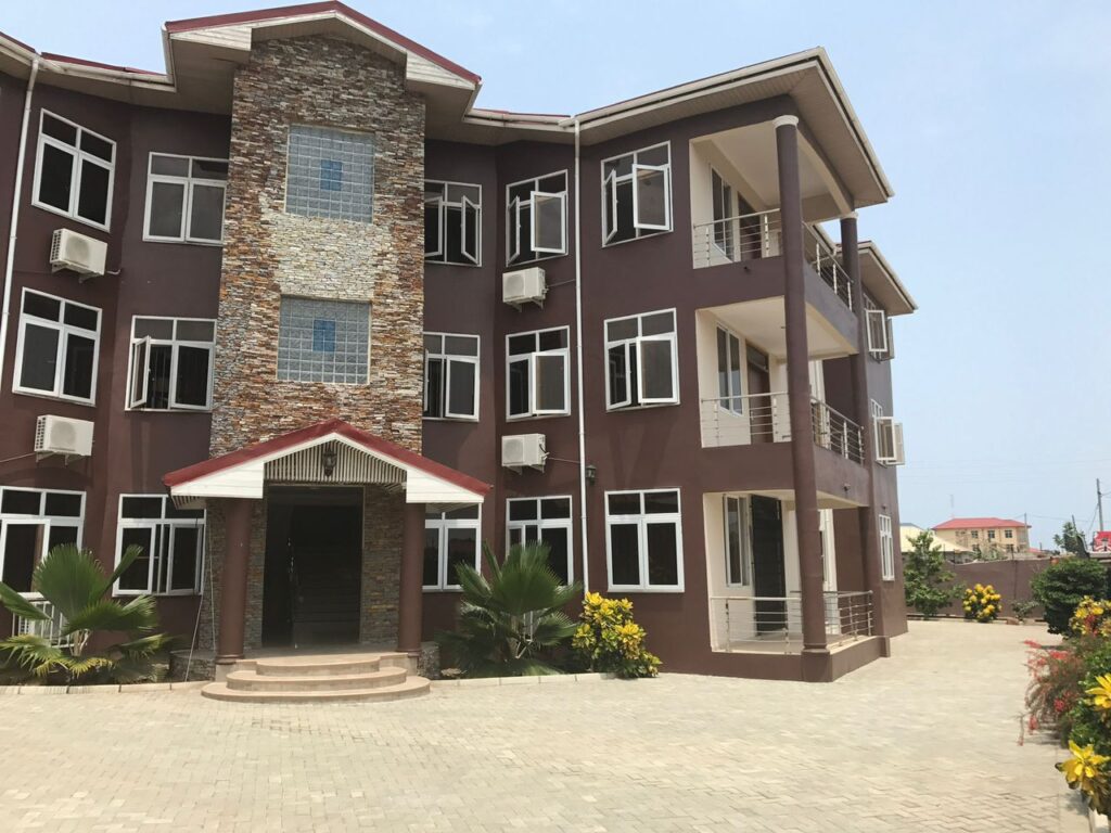 Located behind Ghana Trade Fair in Tse-Addo, this beautiful 3 bedroom villa boasts 2 bathrooms, a living room, and a family area. With a security post and fully fitted amenities, including a standby generator and water reservoir, you can rest assured that you and your loved ones are safe and comfortable. The villa also features parking for up to 12 cars. This luxurious property is available for rent at $1,300 per month (service charge inclusive) and a payment plan is available for up to one year. Don’t miss out on the opportunity to live in style and comfort at this prime location.